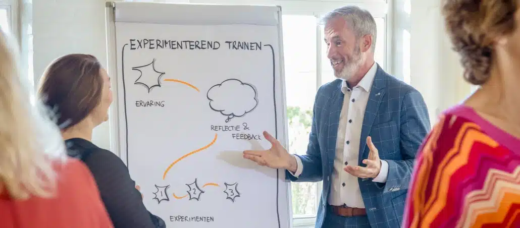 Experimenteren trainen is een ervaringsgerichte manier van trainen waarbij de trainer geen theorie aanbiedt. In plaats daarvan brengt iedere deelnemer een eigen casus in.